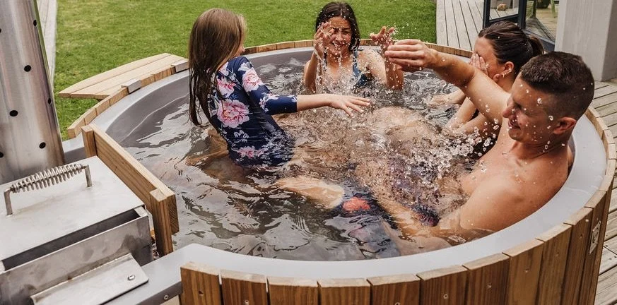 The outside bath and shower area offers a unique opportunity for relaxation and fun. With soothing water features, it serves as an ideal space for adults looking for a tranquil escape, while providing entertainment for children.